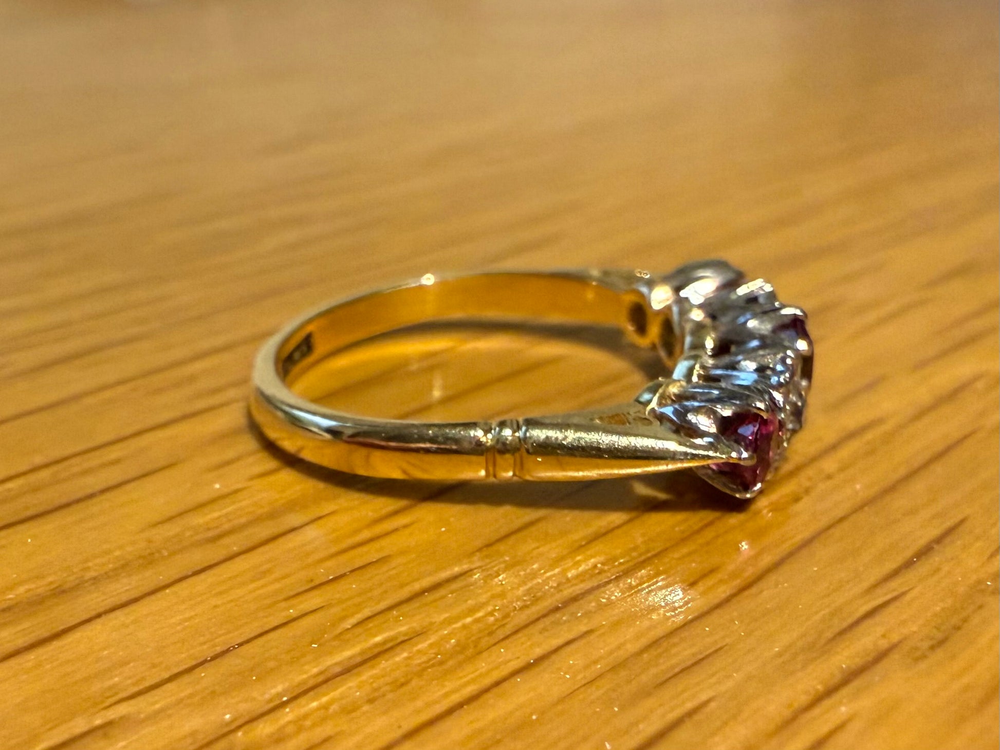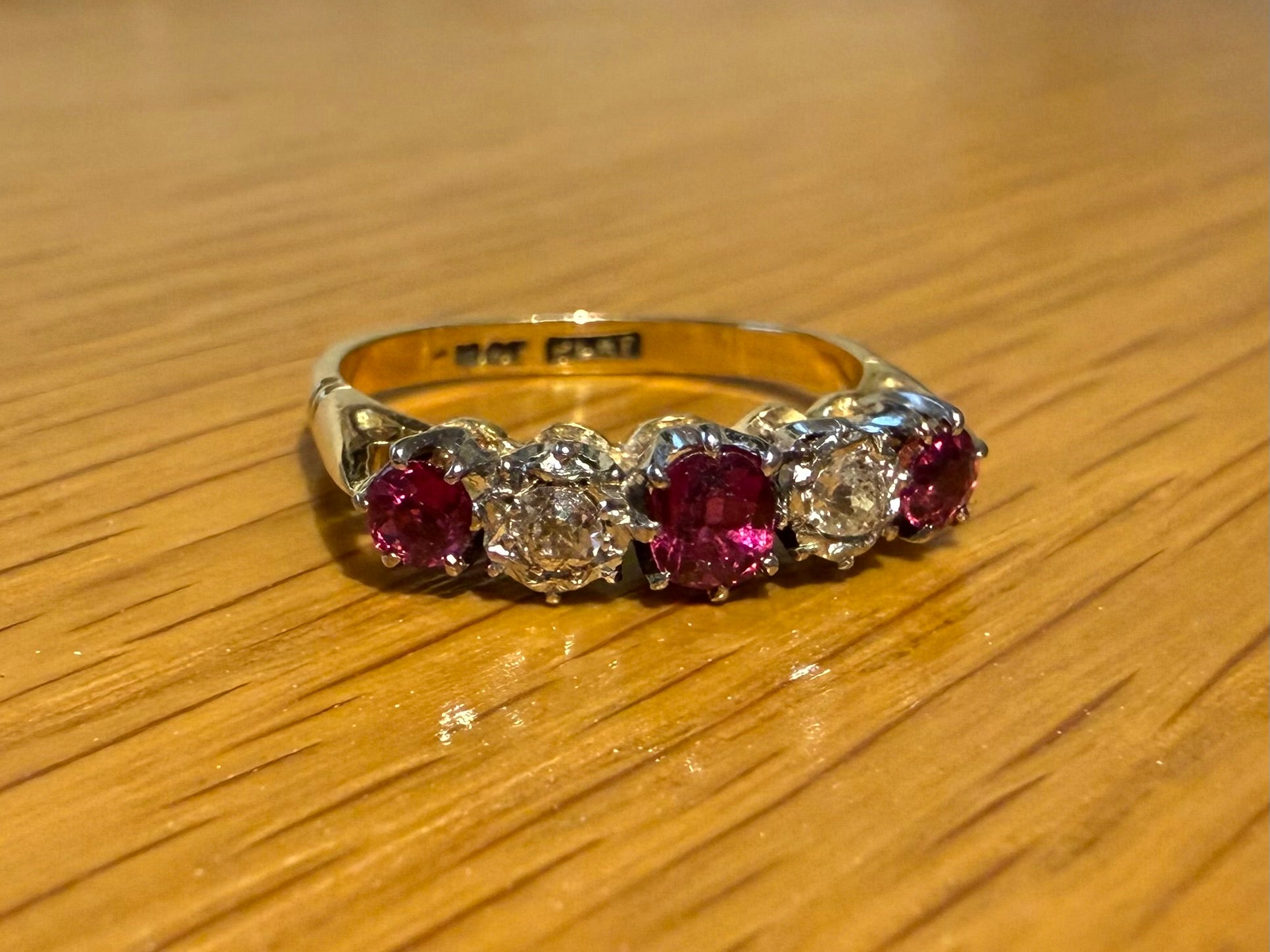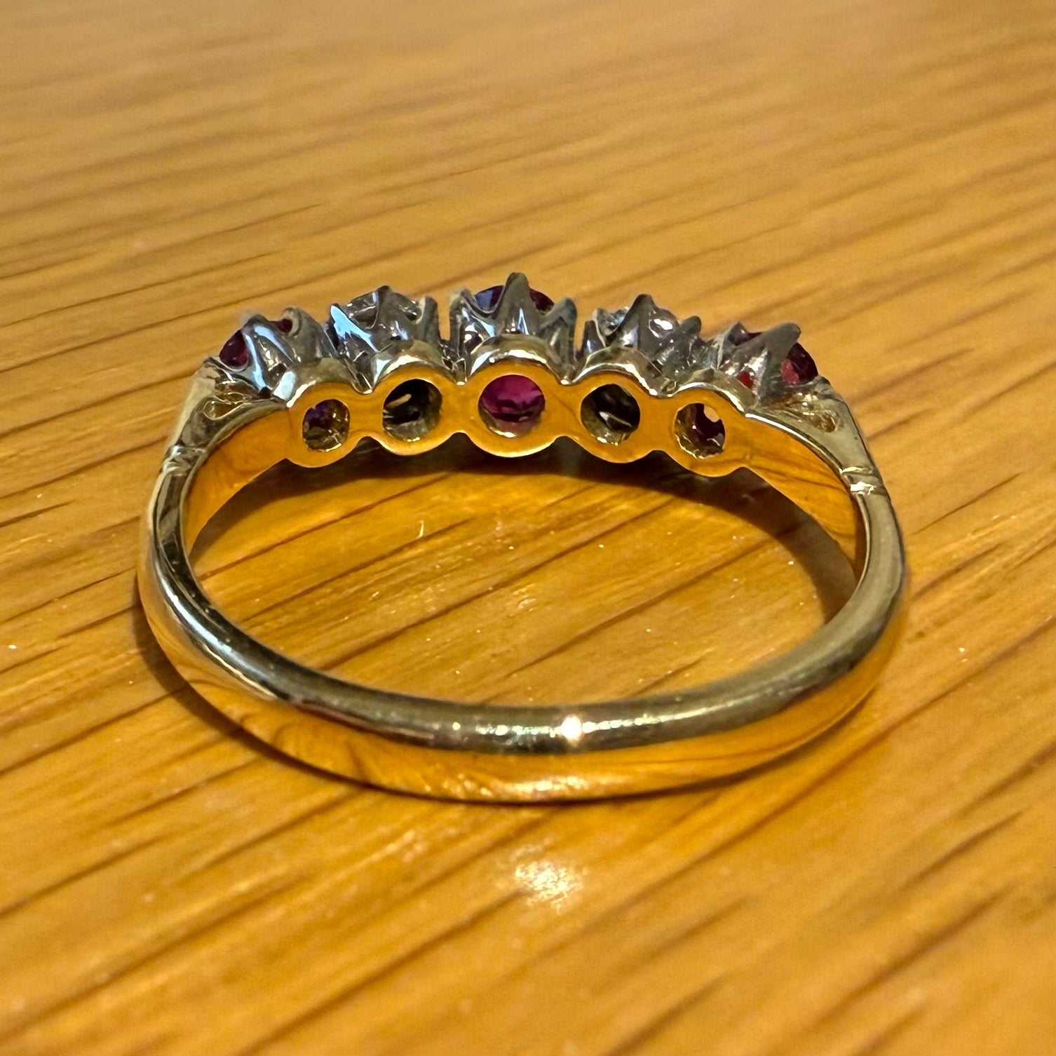 18CT YELLOW GOLD RUBY AND DIAMOND 5 STONE ETERNITY RING