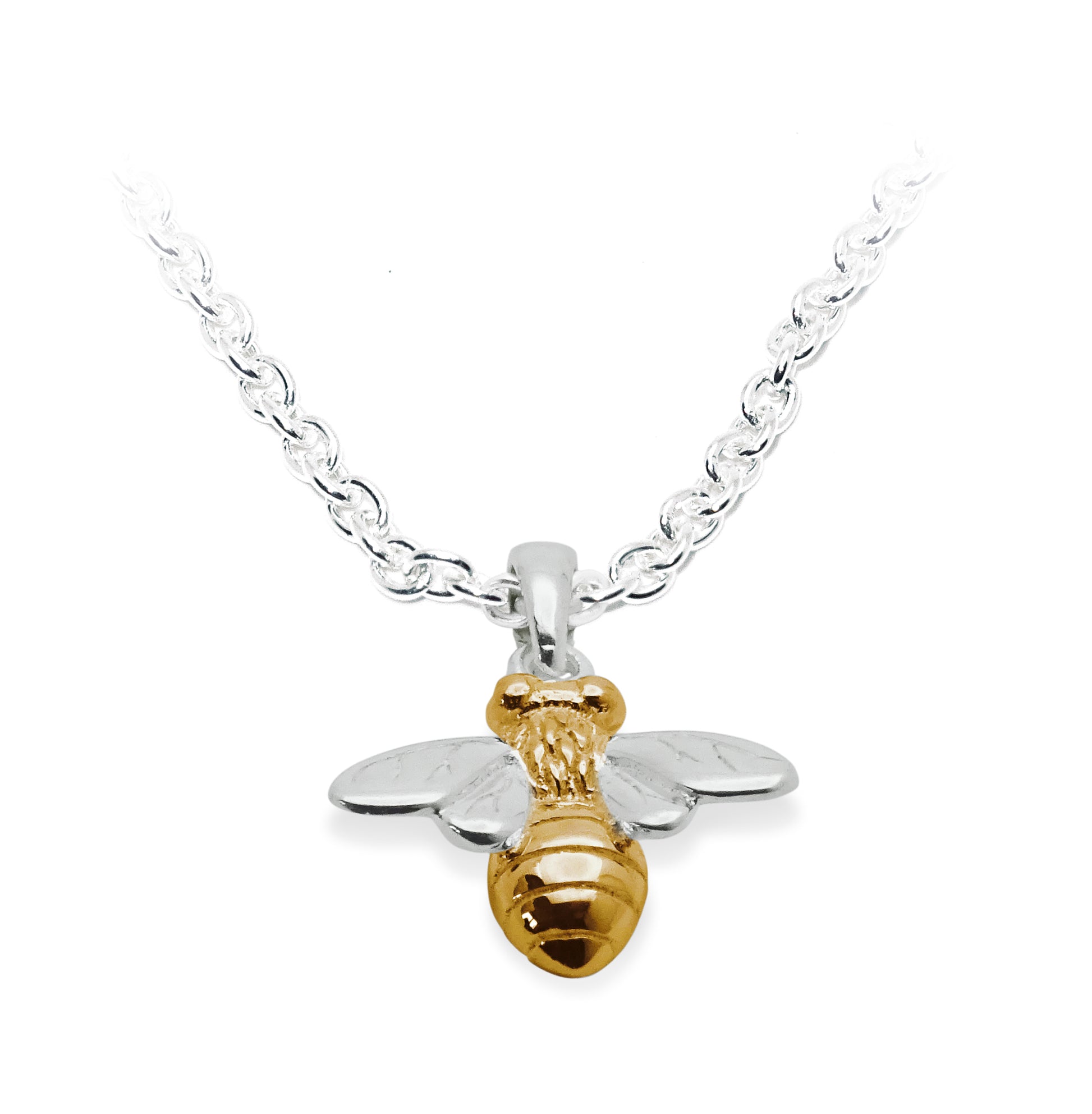 Add a touch of nature to your outfit with our beautiful Gold Plated Bee Pendant. This stunning pendant is a statement piece that will catch everyone's eye. The silver chain adds a touch of elegance to the overall look. Show your love for bees and elevate your style with this gorgeous pendant.