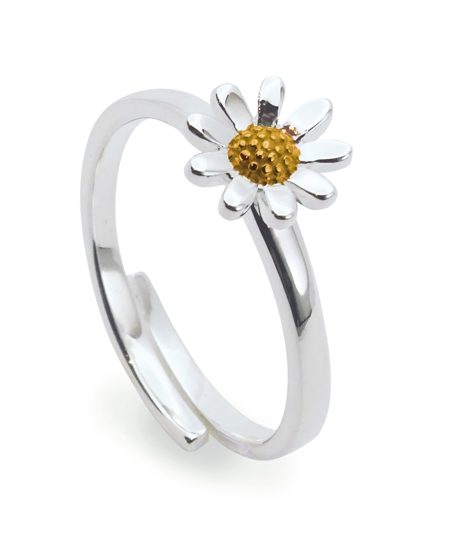 Elevate your style with our stunning Adjustable Daisy Ring. Crafted from sterling silver with a gold plated center, this elegant piece showcases a delicate Daisy. Embrace the beauty of nature and add a touch of timeless sophistication to any outfit.