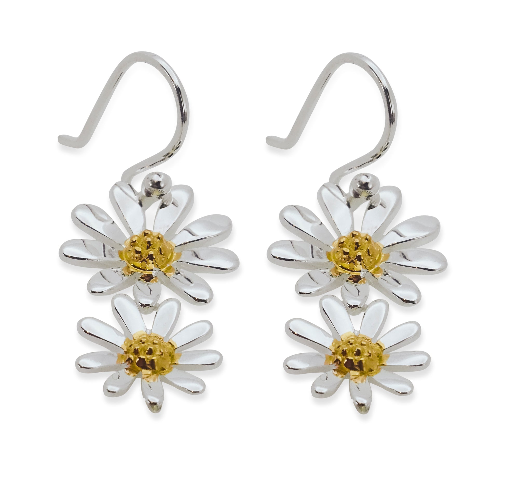 Indulge in nature's beauty with our Silver Double Daisy Drop Earrings. Crafted with intricate detail, each earring features a stunning double daisy drop design. Made with silver, these earrings are a tasteful addition to any outfit. Elevate your style with these exclusive earrings.